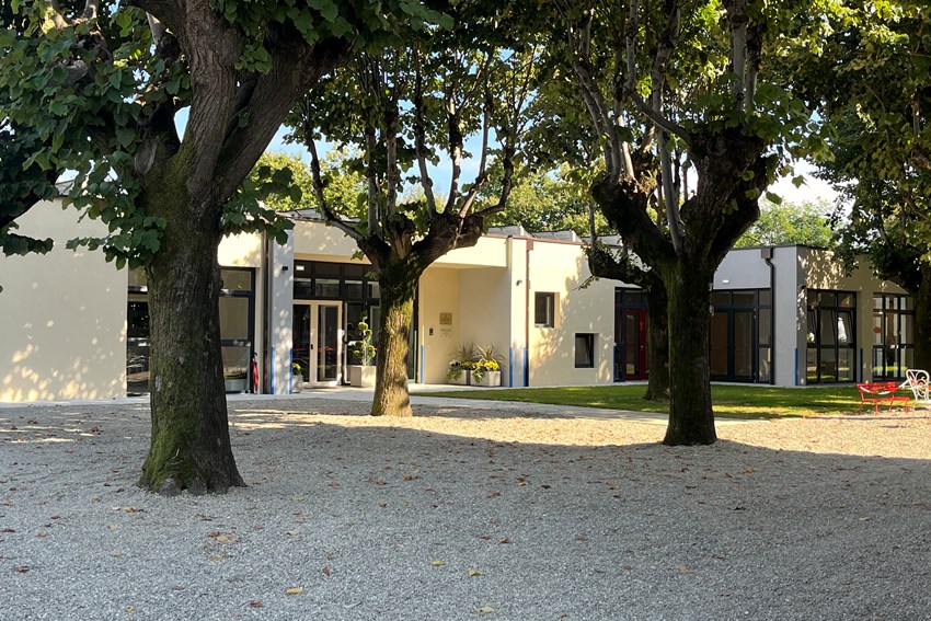 Realizzato nell’area di Villa Curioni, area soggetta a vincolo paesaggistico e monumentale, il nuovo asilo nido è stato progettato per calarsi con rispetto in tale contesto di pregio: morfologia compatta e altezze contenute, palette materica essenziale e aperture calibrate verso il parco riducono l’impatto visivo e valorizzano le visuali sul verde e sulle preesistenze.