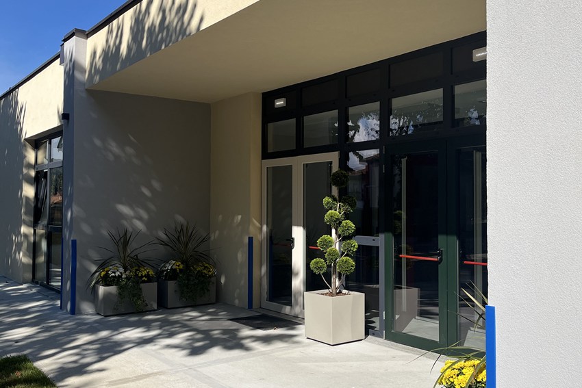 Tratto predominante dell’edificio sono le grandi vetrate rivolte verso lo spazio verde esterno, le quali oltre a garantire un elevato apporto di luce naturale (sempre superiore, per gli spazi con presenza continuativa di persone, al doppio dei requisiti minimi di legge) contribuiranno a migliorare il benessere degli utenti mediante il costante contatto visivo con la natura.