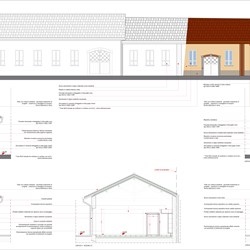 L'intervento ha visto innanzitutto le opere di restauro e conservazione delle murature originarie, il risanamento delle coperture e delle fondazioni, il restauro dell'antica meridiana e delle scritte in facciata, la conservazione di un antico pavimento in acciottolato nella ex stalla, la sistemazione e la valorizzazione delle antiche attrezzature quali l'abbeveratoio per gli animali e le vecchie strutture di lavorazione, restauro ed adibite a nuova funzione ma conservata a memoria della pregressa destinazione.