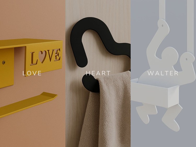 Una linea di porta-oggetti da doccia ispirata alla figura di uno scalatore: un richiamo ironico e immediatamente riconoscibile che unisce funzionalità, identità e leggerezza progettuale.